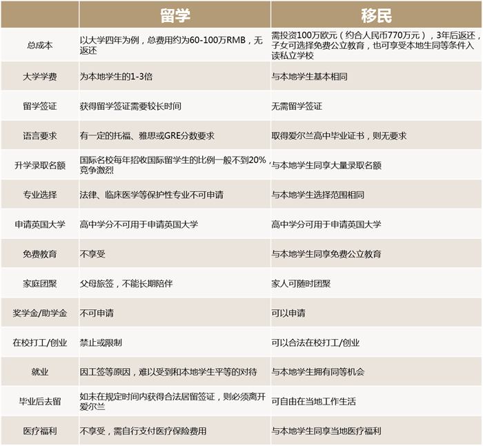 而對于以國際學生身份在海外接受教育的留學生來說,可能將會受到一些不公平的待遇。以愛爾蘭為例,選擇直接送孩子前往愛爾蘭留學,和先為孩子規(guī)劃愛爾蘭身份,再到當地接受教育兩種方式之間,存在著巨大的差異: