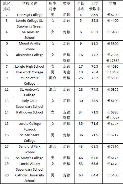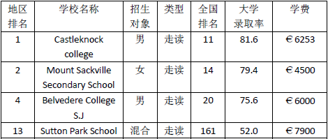 (據(jù)2018年Sunday Times愛爾蘭學校排名榜)