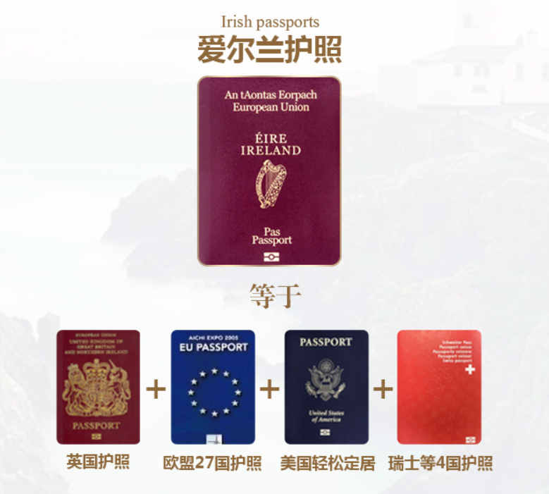 移民愛爾蘭,不僅可享受愛爾蘭純正英式教育、廣闊職業(yè)發(fā)展、優(yōu)渥商業(yè)機會和優(yōu)厚福利保障,取得愛爾蘭護照后,還能輕松跳板歐盟+英國+美國+瑞士,坐擁全球頂級資源。