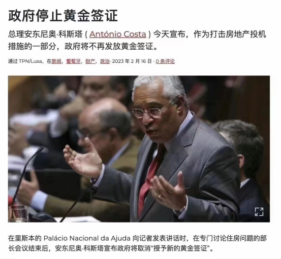 緊跟愛爾蘭步伐,葡萄牙總理安東尼奧·科斯塔2月16日宣布,將徹底關(guān)停葡萄牙“黃金簽證”投資移民項(xiàng)目。科斯塔表示,歷時(shí)十年的黃金簽證已經(jīng)履行了其該有的職責(zé)、并完成歷史使命。消息稱,葡萄牙政府將于2023年3月16日公布黃金簽證項(xiàng)目關(guān)停細(xì)節(jié)。