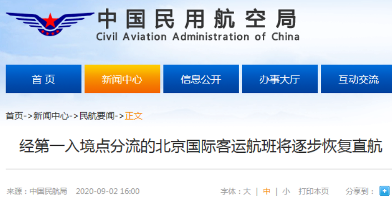民航局9月2日發(fā)布消息稱,在嚴(yán)格采取防控措施、嚴(yán)格防范輸入風(fēng)險(xiǎn)的前提下,自9月3日起逐步將經(jīng)第一入境點(diǎn)分流的北京國(guó)際客運(yùn)航班恢復(fù)直航。
