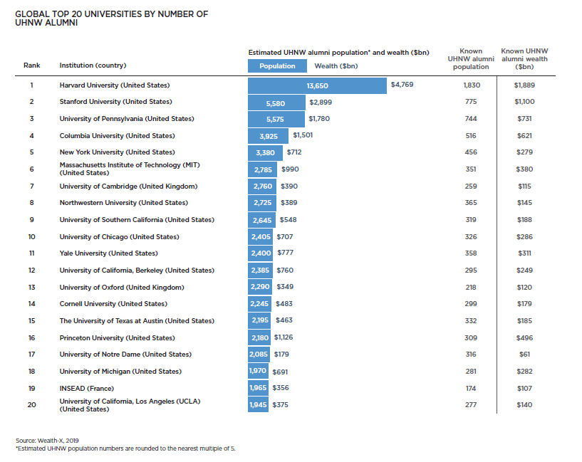 Wealth-X2019大學(xué)超高凈值校友排行榜前20名