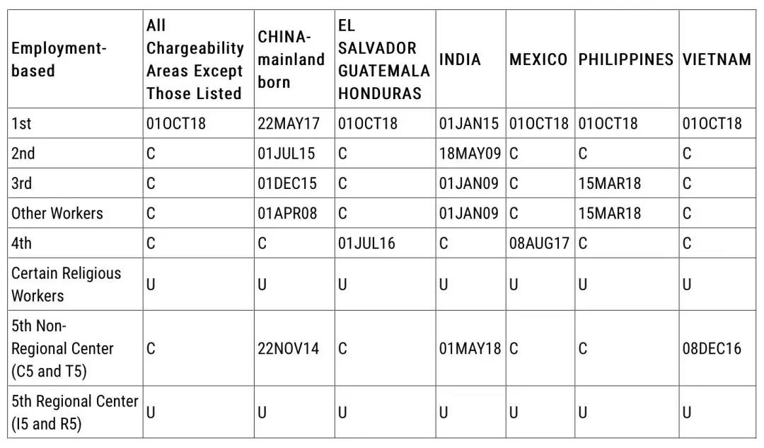 注:目前EB-5區(qū)域中心項目的簽證尚屬“U”,Unavailable。當(dāng)前區(qū)域中心法案于12月20日到期,已經(jīng)確定再次搭車聯(lián)邦預(yù)算案,延期至2020年9月30日。因此,區(qū)域中心項目簽證隨之恢復(fù)正常。