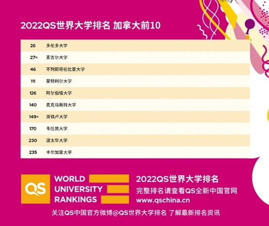 加拿大有3所大學(xué)進(jìn)入世界前100名,8所進(jìn)入前200名。