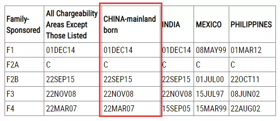 ·親屬移民排期表A,F(xiàn)2A類(lèi)別無(wú)需排期,其它類(lèi)別均原地踏步;
