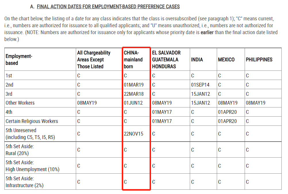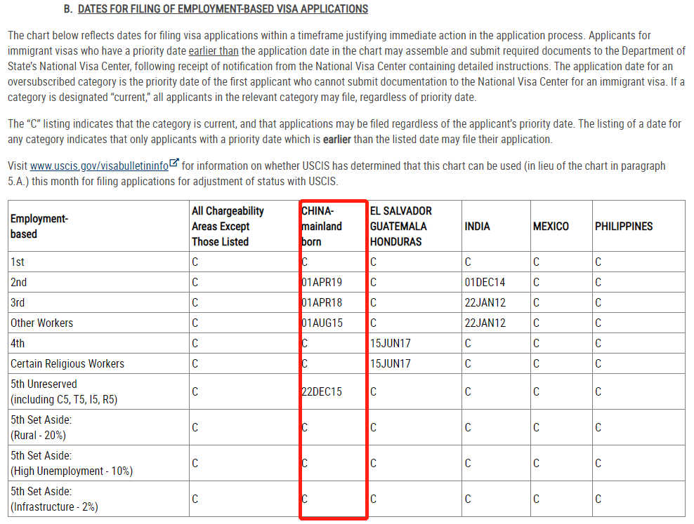 ·由于EB-5新政為三類項目(鄉(xiāng)村、高失業(yè)地區(qū)、基建)預(yù)留了簽證配額,目前這三類預(yù)留簽證類別均處于無排期狀態(tài)。