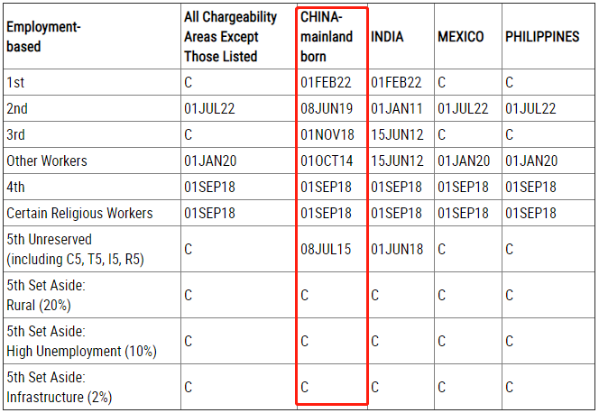 EB-3:排期為2019年2月1日,前進(jìn)5個月