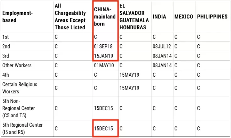 EB-3大幅倒退半年回到2019年1月15日,倒退5.5個月;