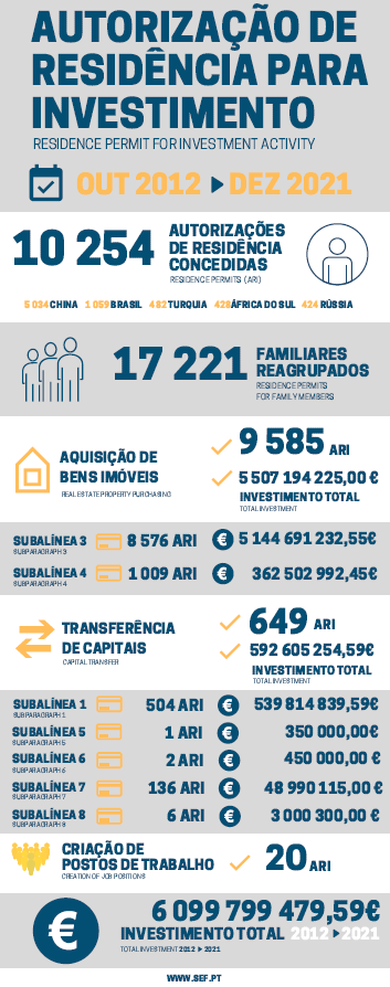 葡萄牙2021年黃金簽證數(shù)據(jù)出爐!累計吸金指數(shù)將破61億歐!