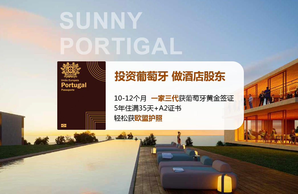 永銘國際精選葡萄牙里斯本、波爾圖、阿爾加維等熱門旅游地五星級酒店投資項目,投資28萬歐起,一家三代獲葡萄牙黃金簽證。無持有成本、無酒店管理稅費(fèi)、無需自己打理、提供每年7天免費(fèi)住宿。