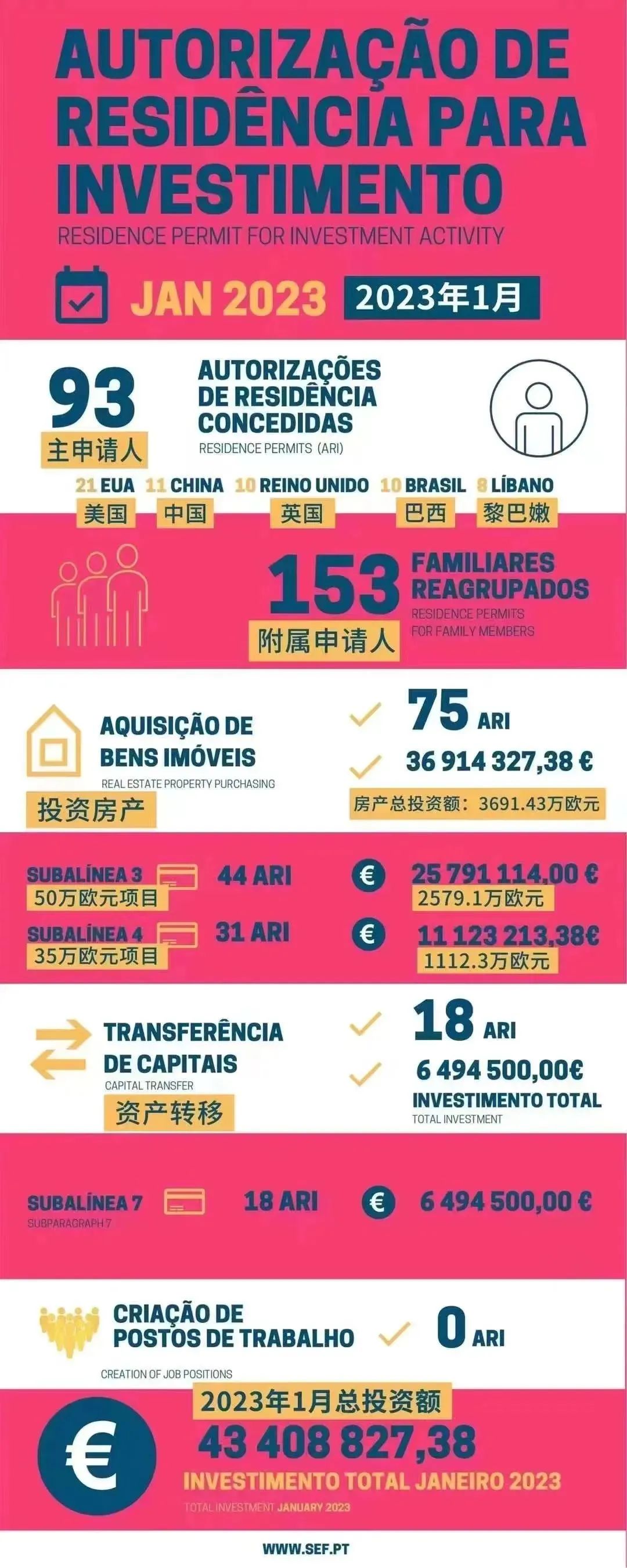 葡萄牙1月黃金簽證數(shù)據(jù)公布