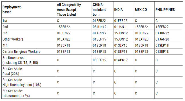 EB-1:排期為2022年2月1日,無(wú)變化
