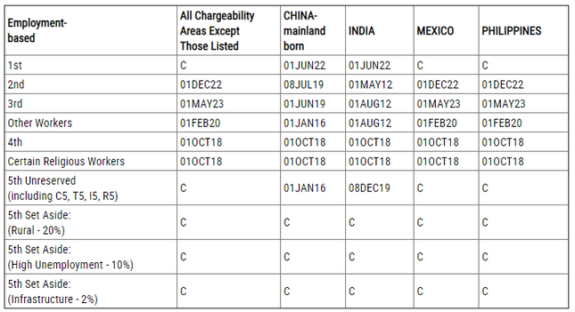 EB-5預(yù)留類別(鄉(xiāng)村、高失業(yè)率、基建項(xiàng)目):無(wú)排期