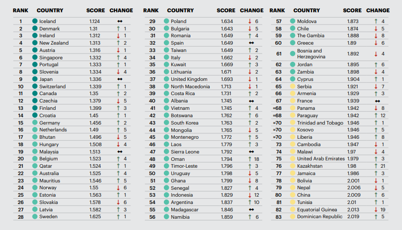 近日,國(guó)際智庫(kù)經(jīng)濟(jì)與和平研究所IEP最新發(fā)布第17版《2023全球和平指數(shù)》報(bào)告,冰島、丹麥和愛爾蘭位列前三名。
