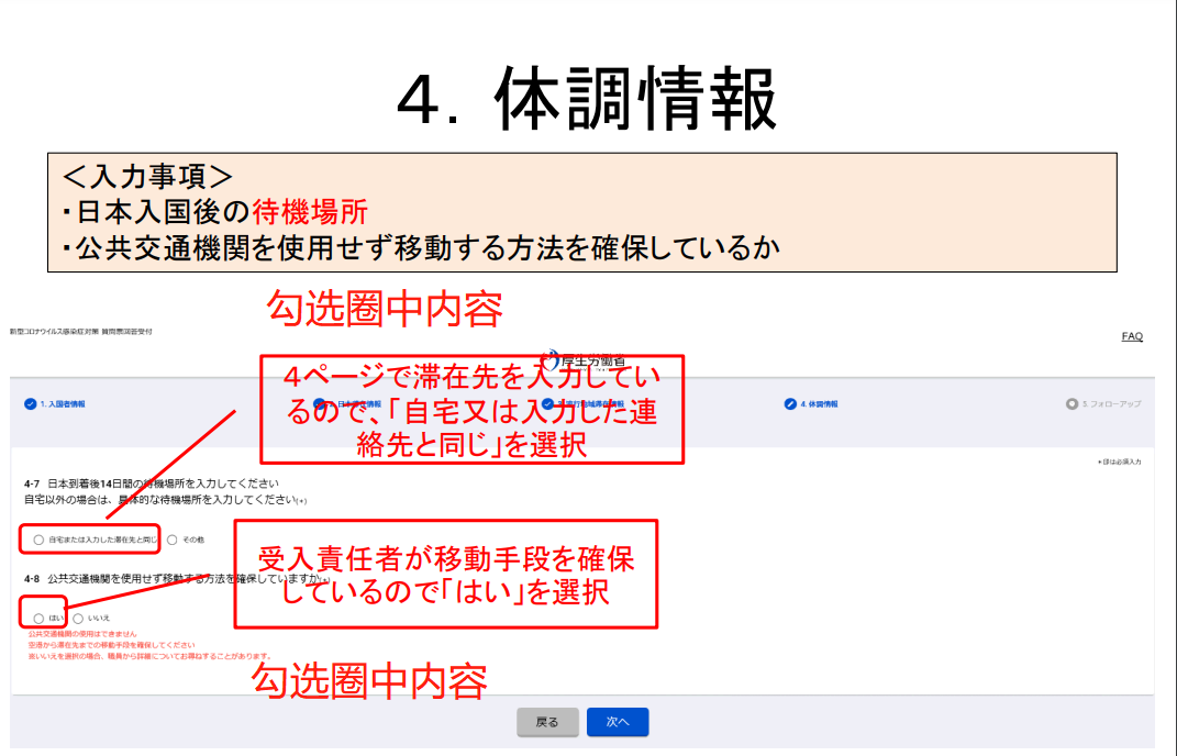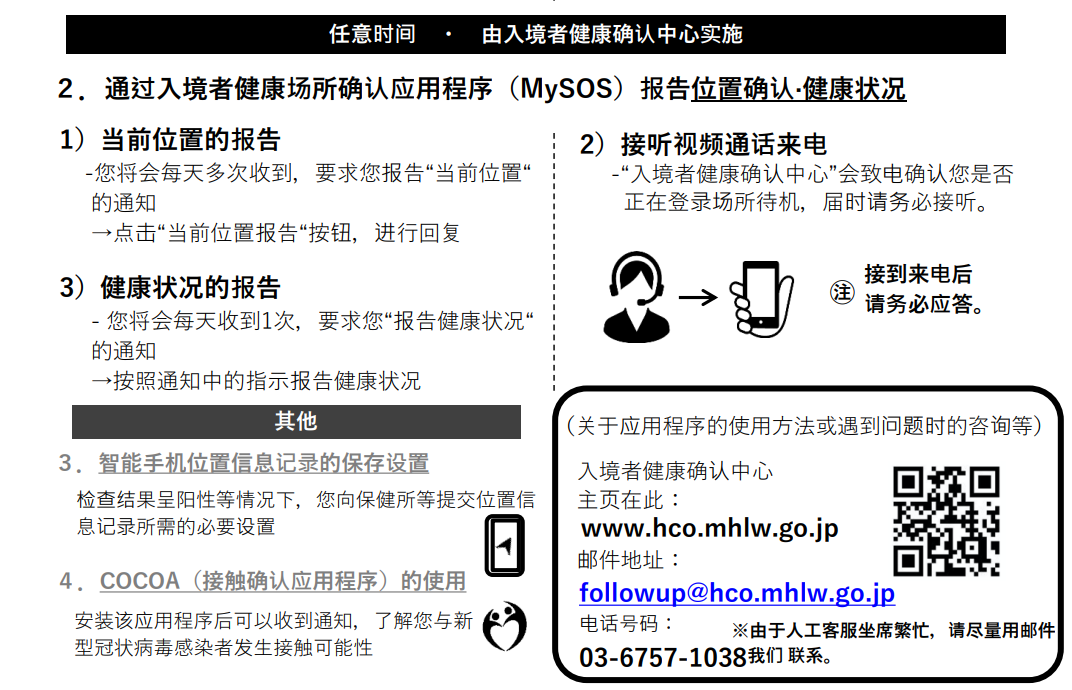 5)通過MySOS,向厚生勞動(dòng)省“入境者健康確認(rèn)中心”通報(bào)健康狀況及所在地。
