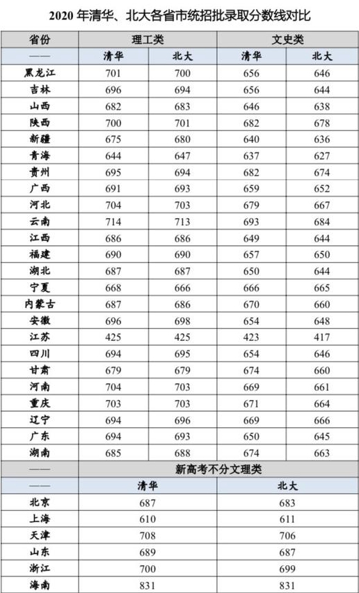 而2020清華、北大各省統(tǒng)招批錄取分?jǐn)?shù)線,理工類接近700分,文史類約650分,比華僑生錄取分?jǐn)?shù)線整整高出兩三百分。