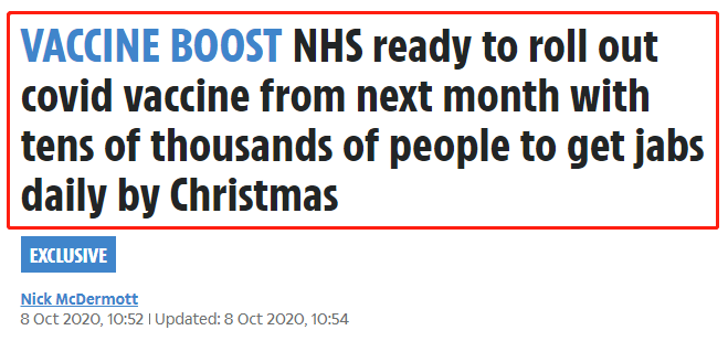 據(jù)悉,英國率先接種的是牛津大學(xué)和阿斯利康研發(fā)的疫苗(簡(jiǎn)稱“牛津疫苗”),該疫苗共需接種2次,間隔28天。由于疫苗的性質(zhì)原因,18歲以下(不含18歲)的人均不接種疫苗。如果一切順利,英國很有可能在圣誕節(jié)前實(shí)現(xiàn)疫苗的大規(guī)模接種。