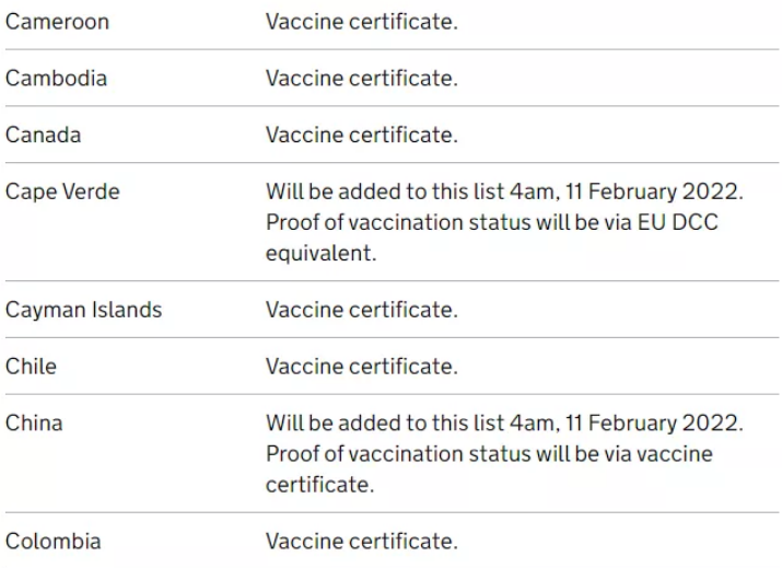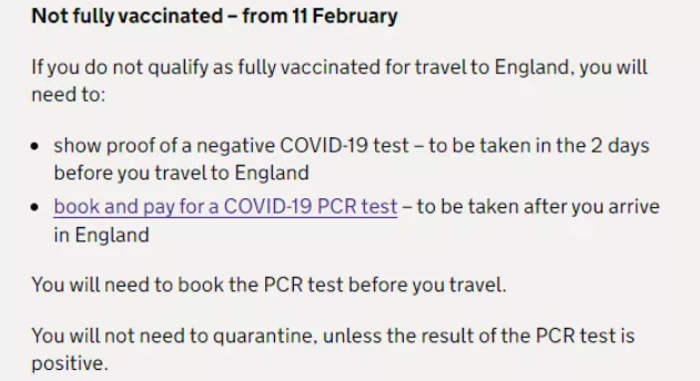 而對(duì)于沒有在獲批地區(qū)接種英國認(rèn)證疫苗的旅客,或未完全接種疫苗的旅行者,需要提供: