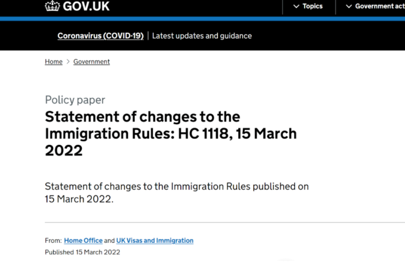 英國(guó)內(nèi)政部于當(dāng)?shù)貢r(shí)間3月15日突然拋出重磅信息,更新并發(fā)布了移民法修訂通知《Statement of Changes to the Immigration Rules: HC 1118》。根據(jù)這份內(nèi)政部提交給議會(huì)的移民法規(guī)修訂通知,多項(xiàng)移民類別政策有重大調(diào)整,其中涉及到大家尤為關(guān)心的英國(guó)首席代表簽證類別(Sole Representative Visa)。如果該移民法規(guī)的修訂被議會(huì)正式通過,則該類別的簽證申請(qǐng)通道將于2022年4月11日上午9點(diǎn)正式關(guān)閉。