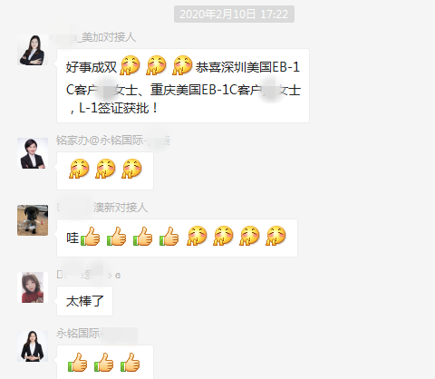 重慶貴賓客戶L女士美國(guó)EB-1C項(xiàng)目L-1簽證獲批