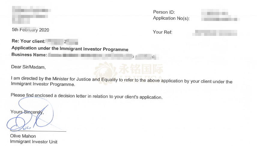 上海貴賓客戶Z先生一家獲批愛(ài)爾蘭最終批復(fù)函